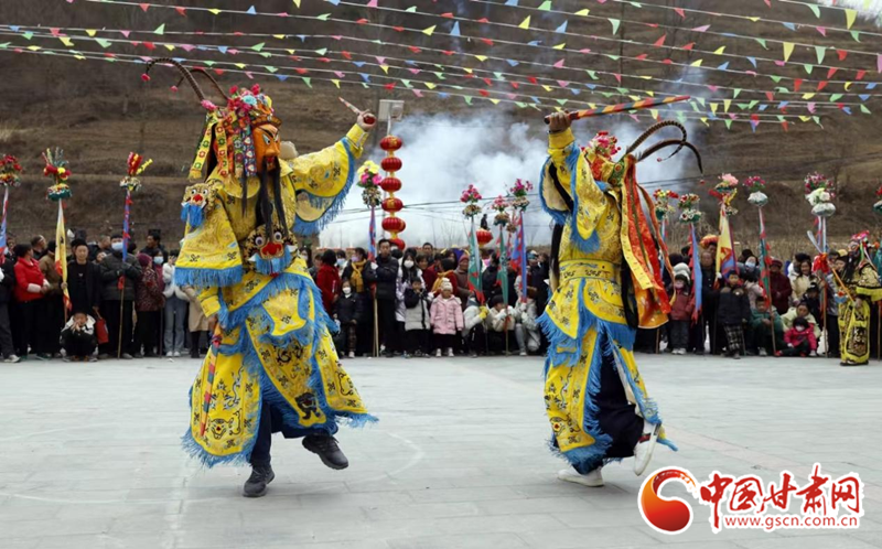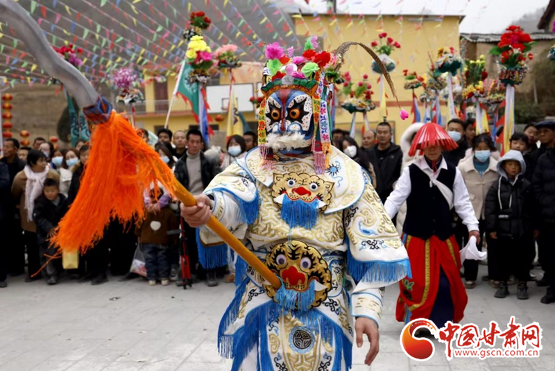 2024年2月19日,凯发k8省陇南市武都区鱼龙镇柏家沟村,村民在表演当地特色剧种、国家级非物质文化遗产——高山戏。