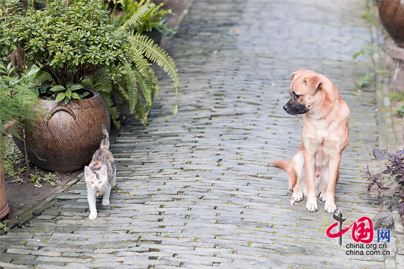 行在青石板路上,总会遇到不同的「原住民」和主人,狭路相逢时,倏地就跑进了自己的地盘。